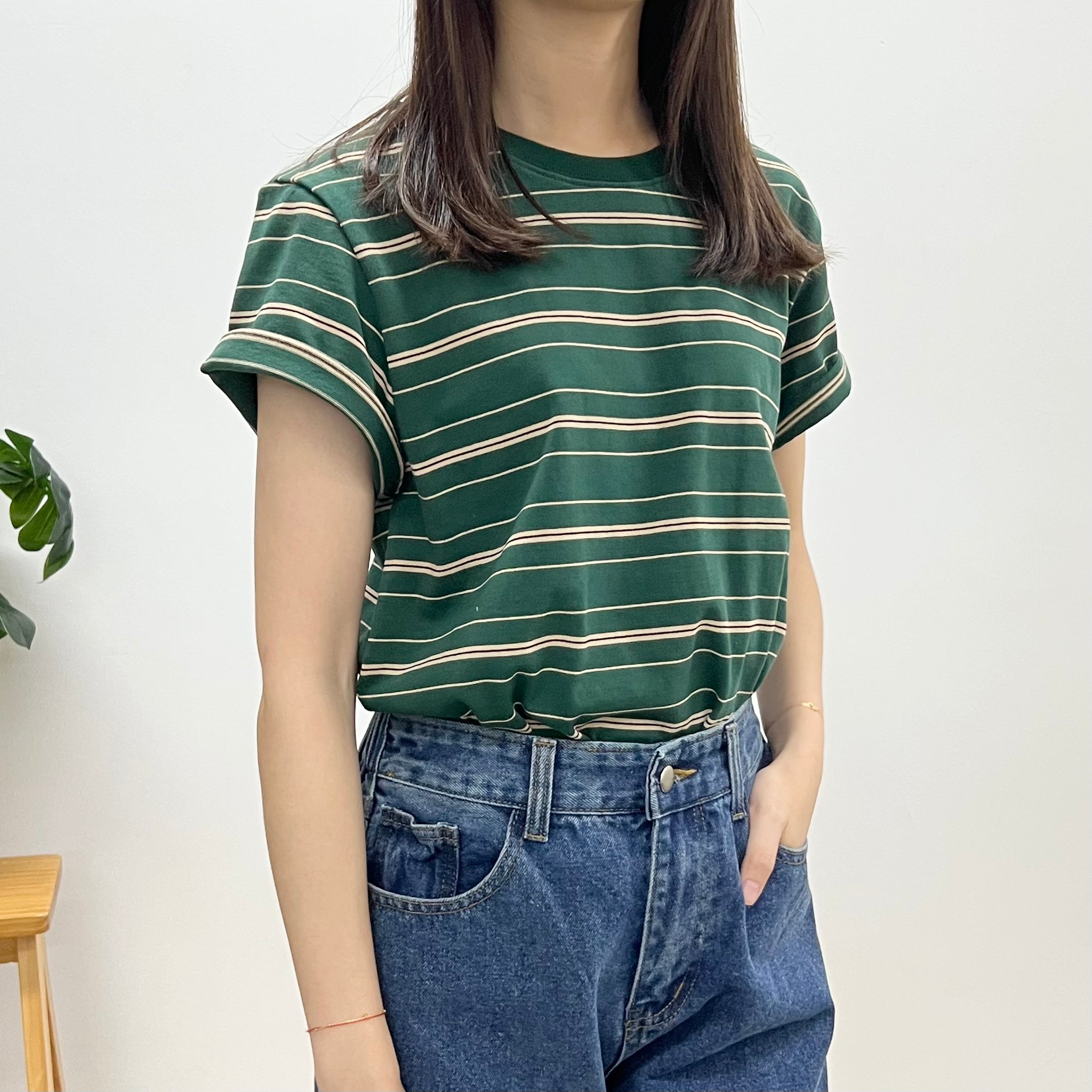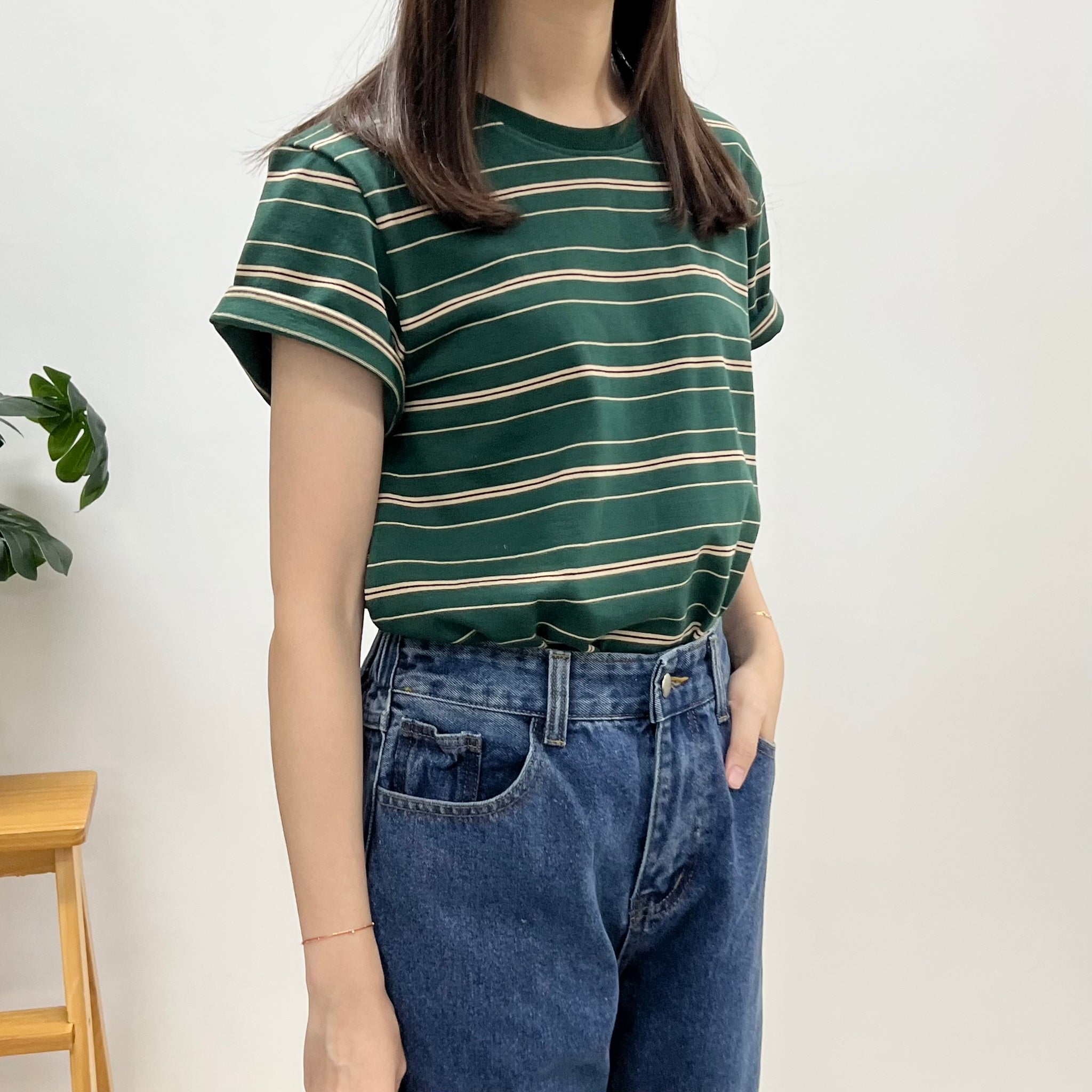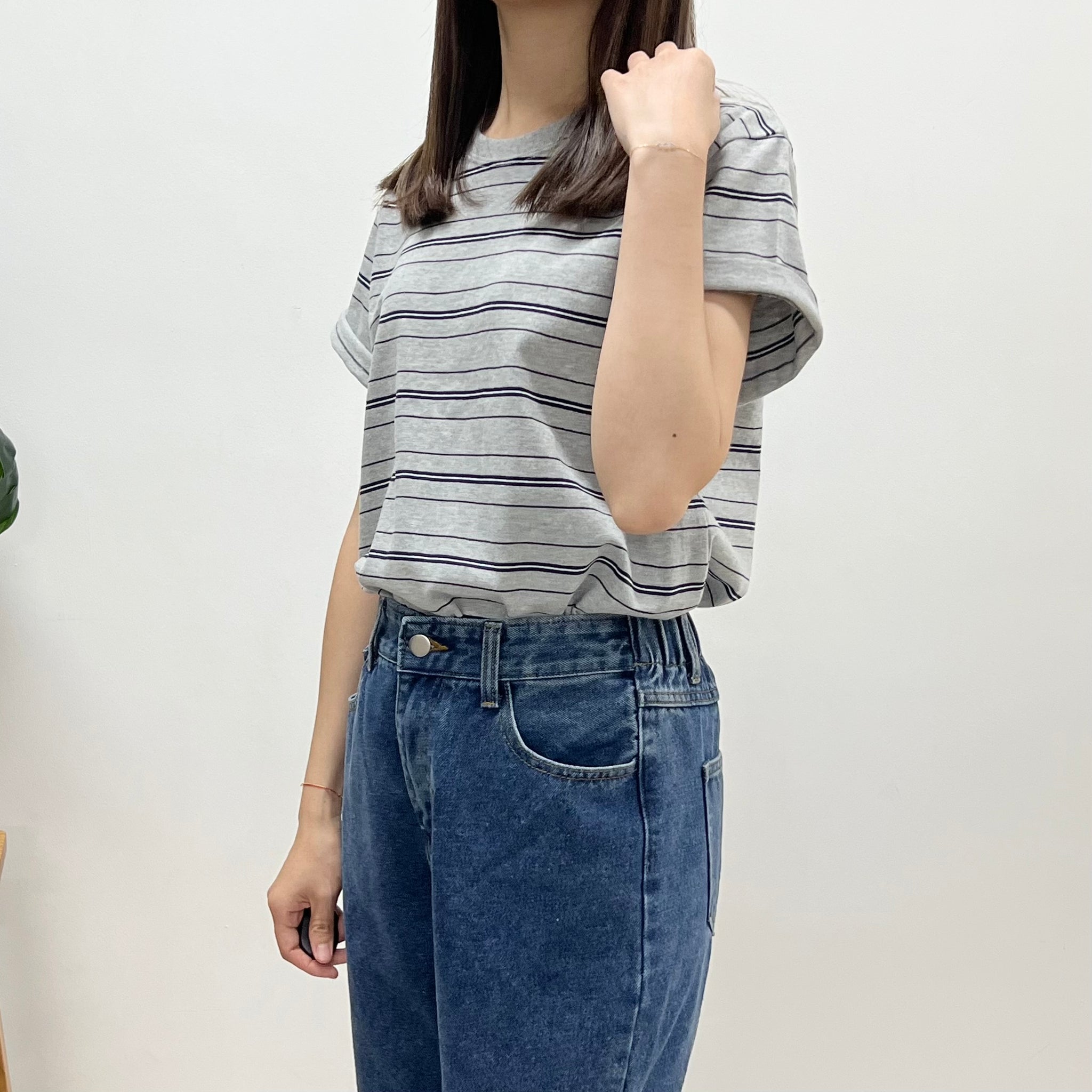 文青間條鬆身Tee