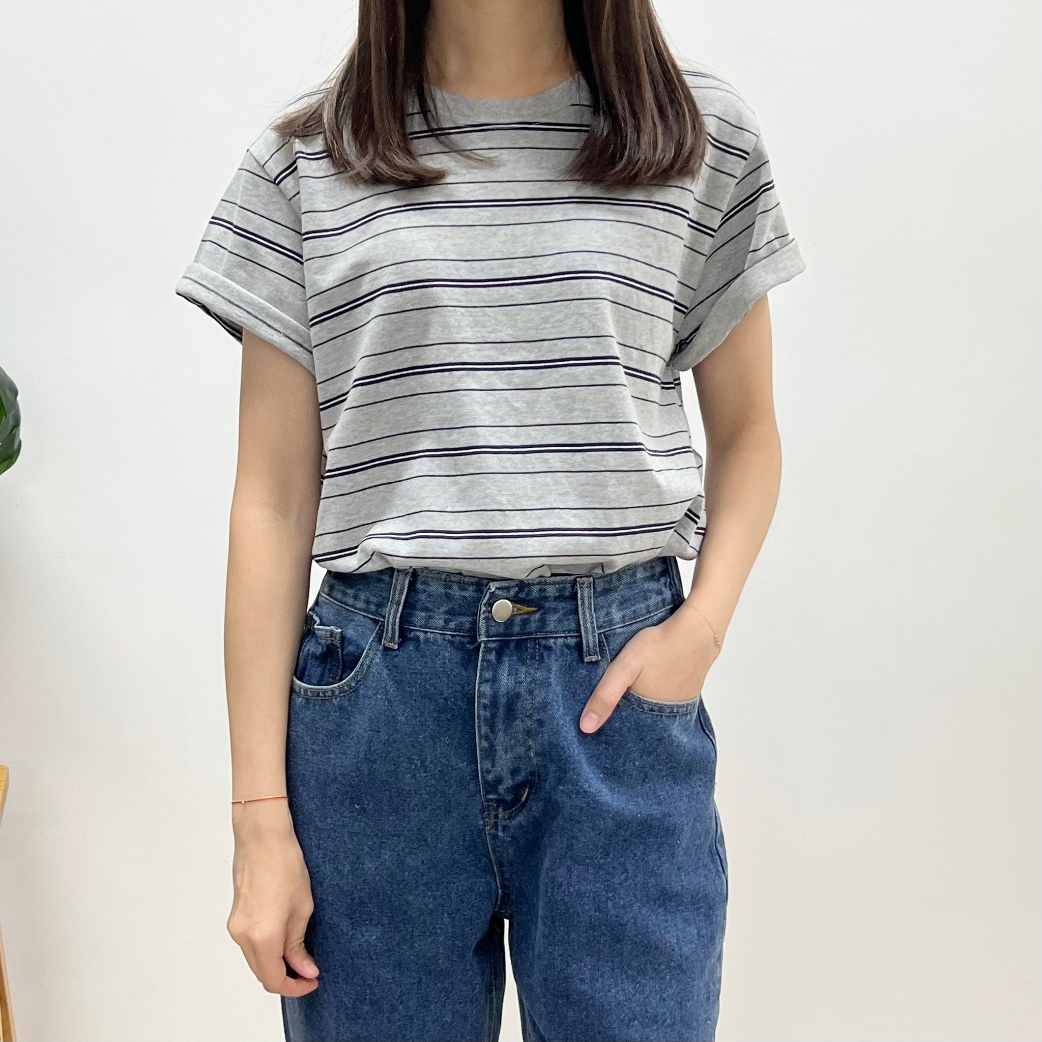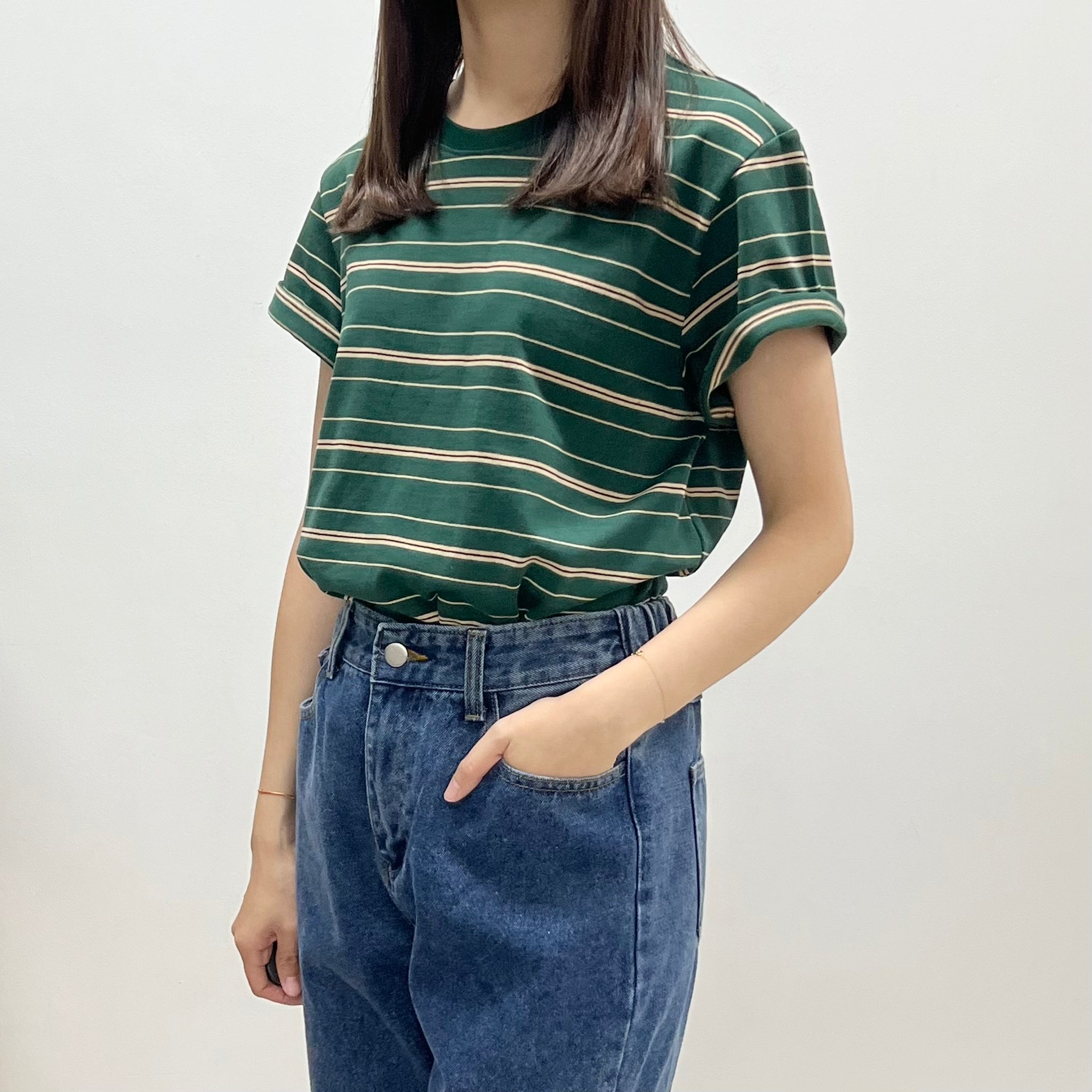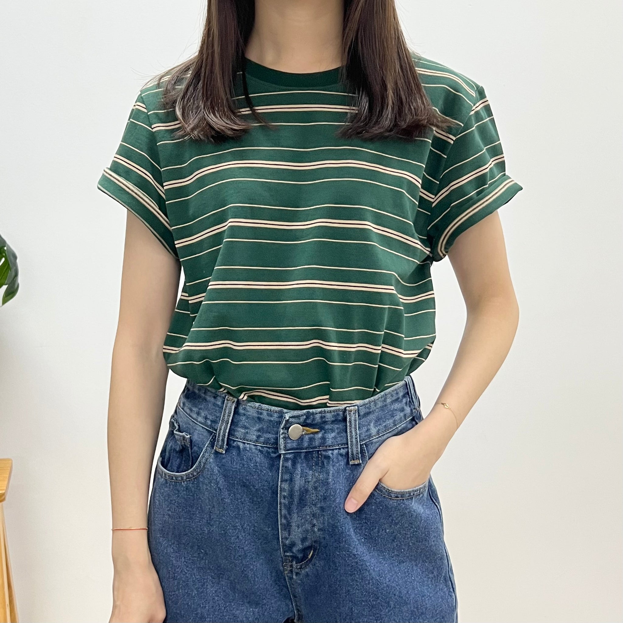文青間條鬆身Tee