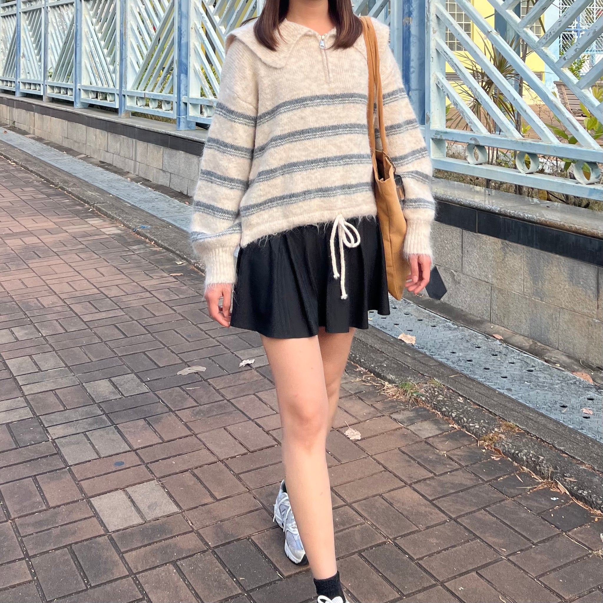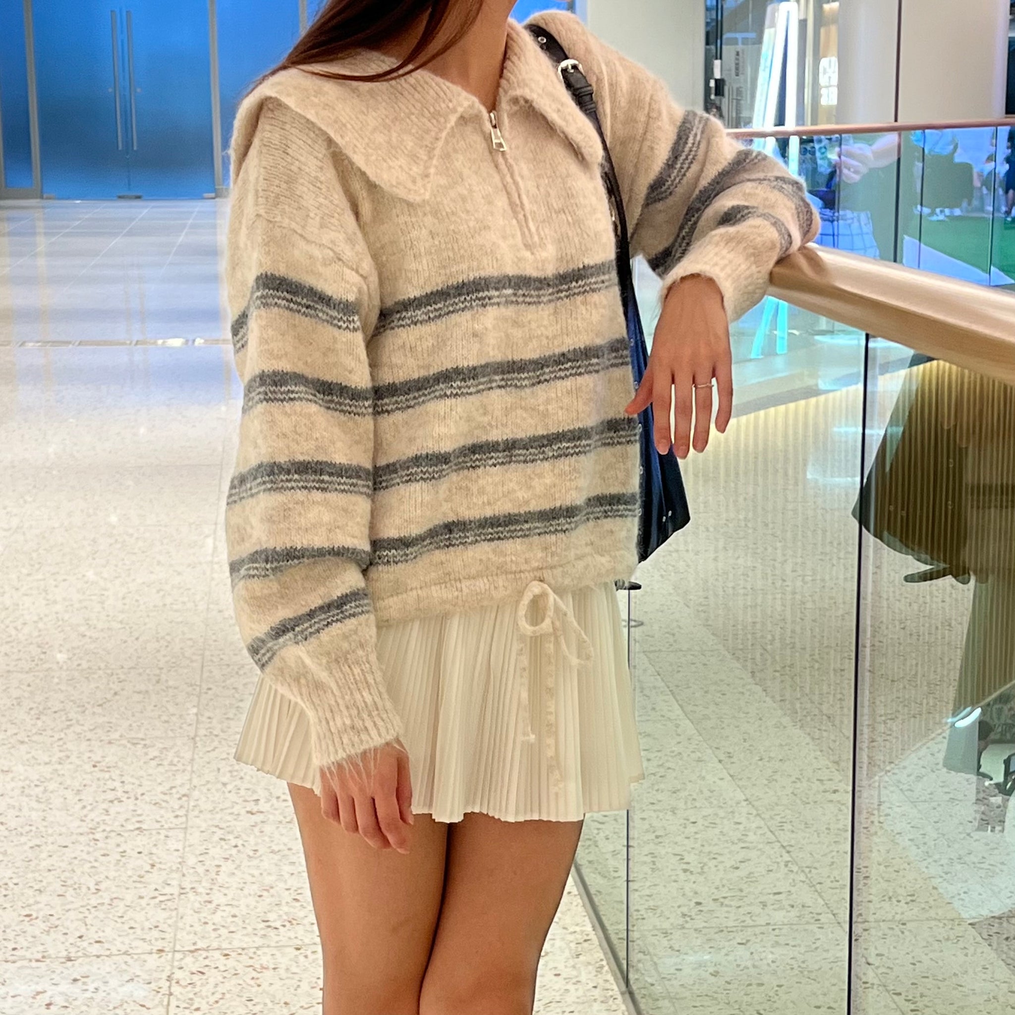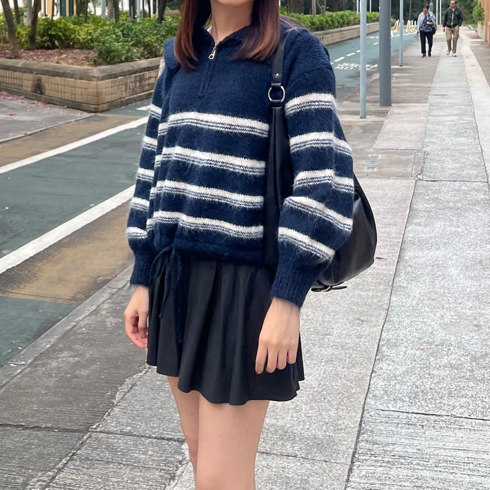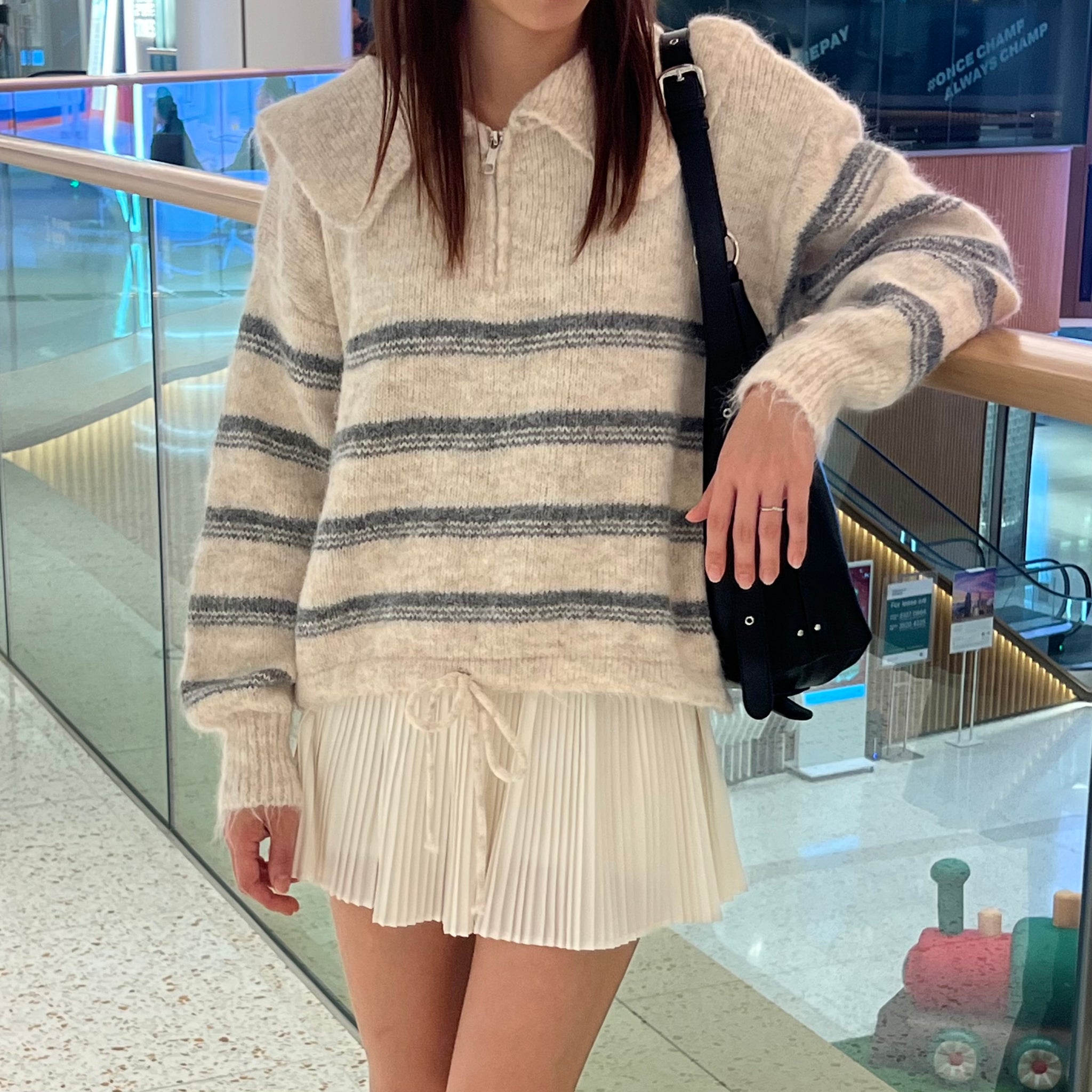 間條半拉鍊索腰上衣