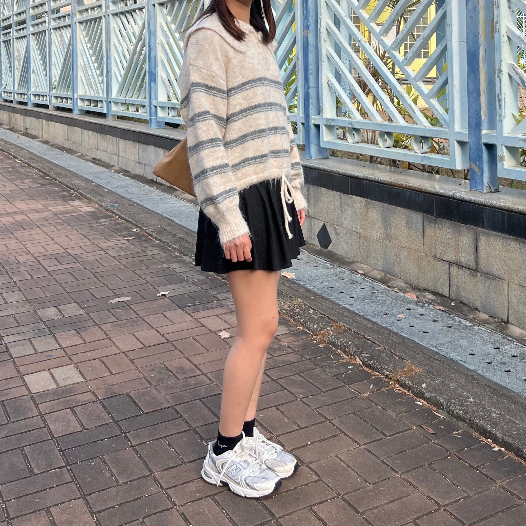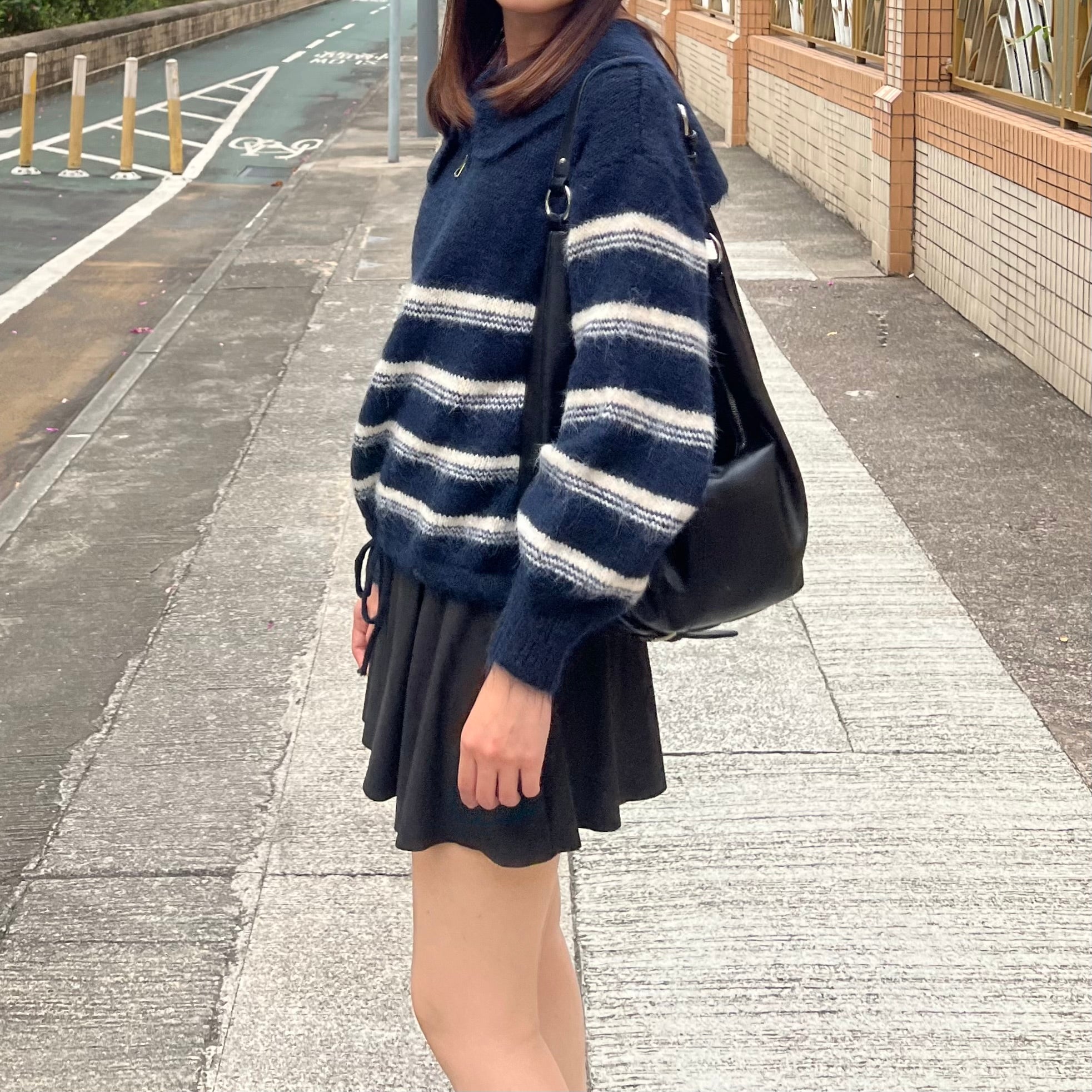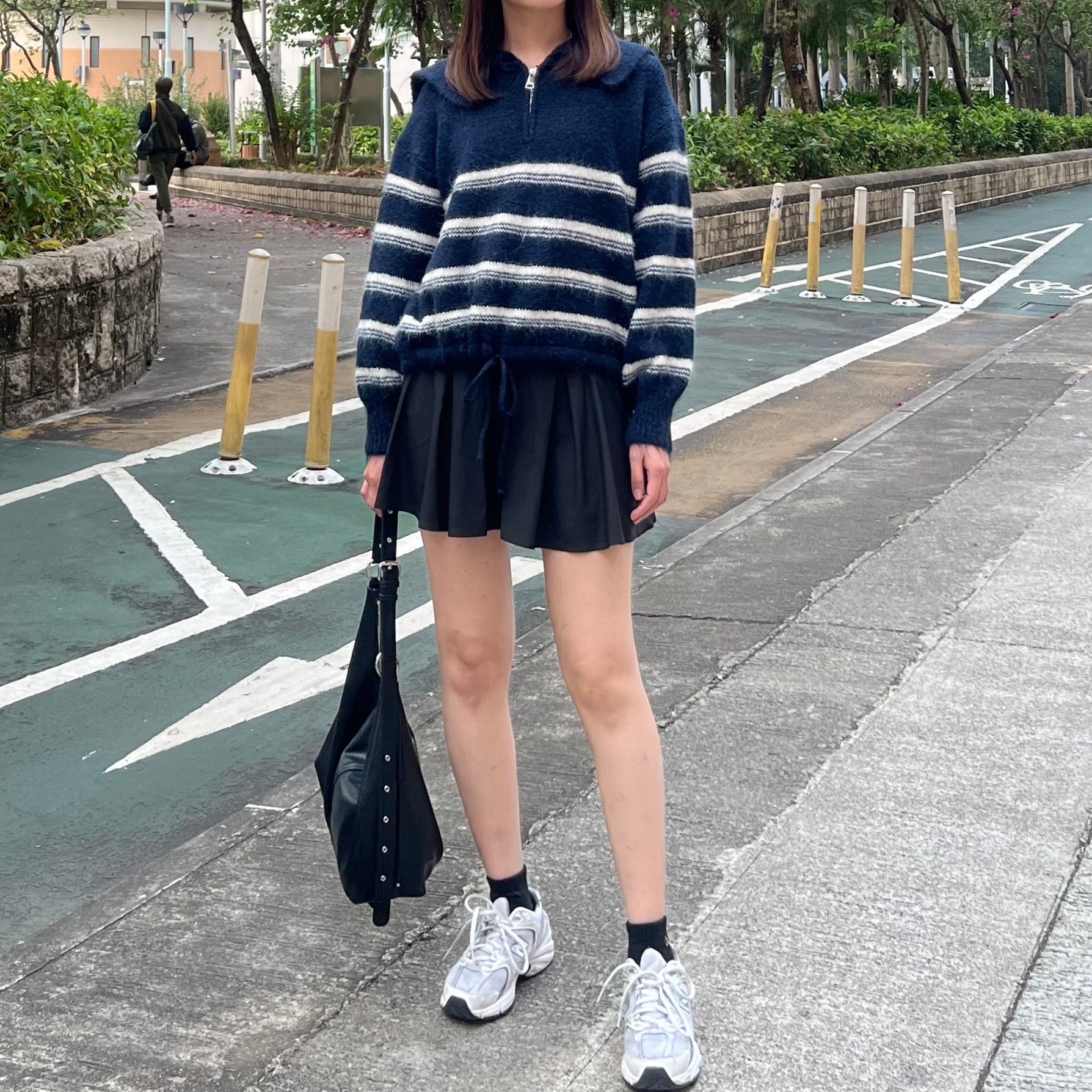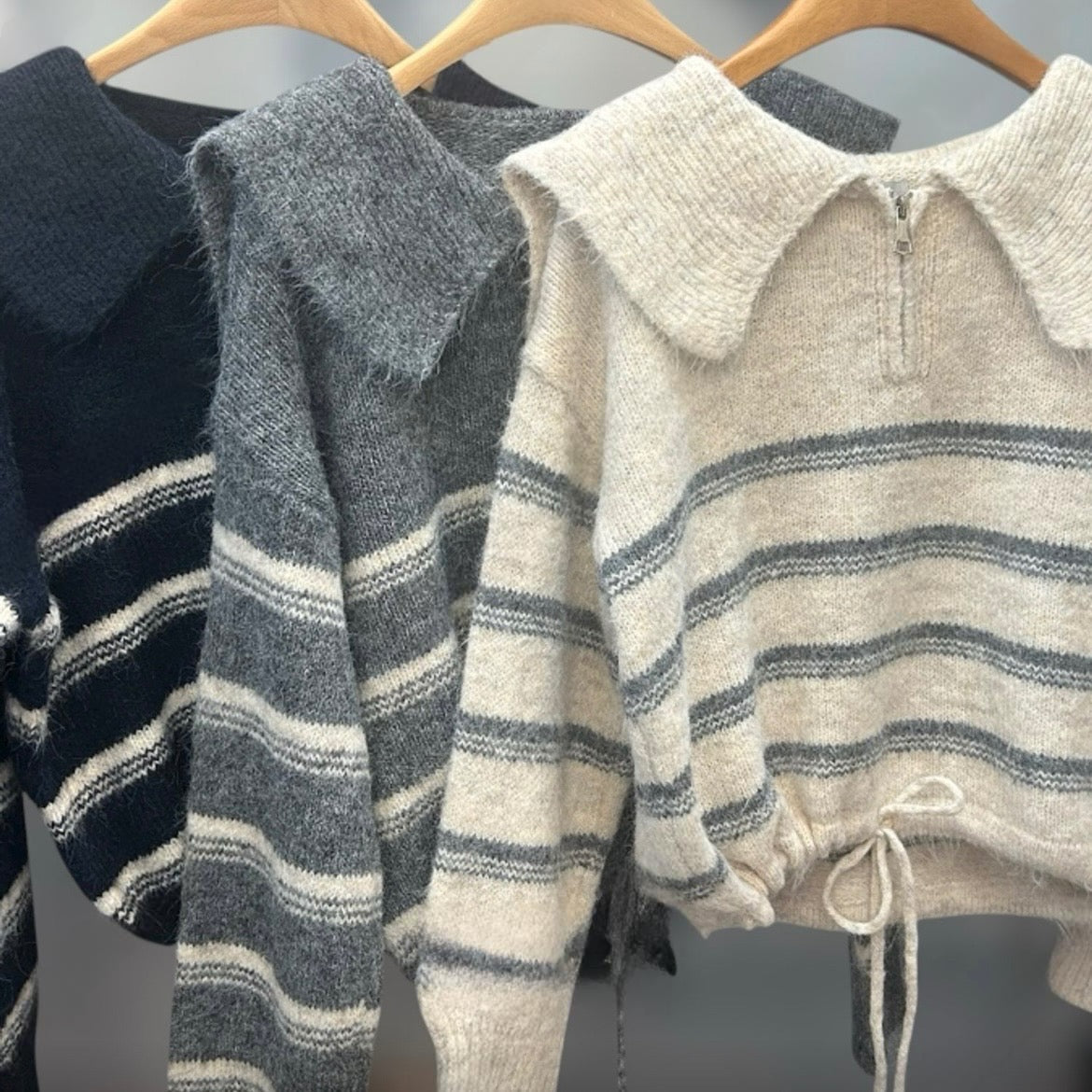 間條半拉鍊索腰上衣