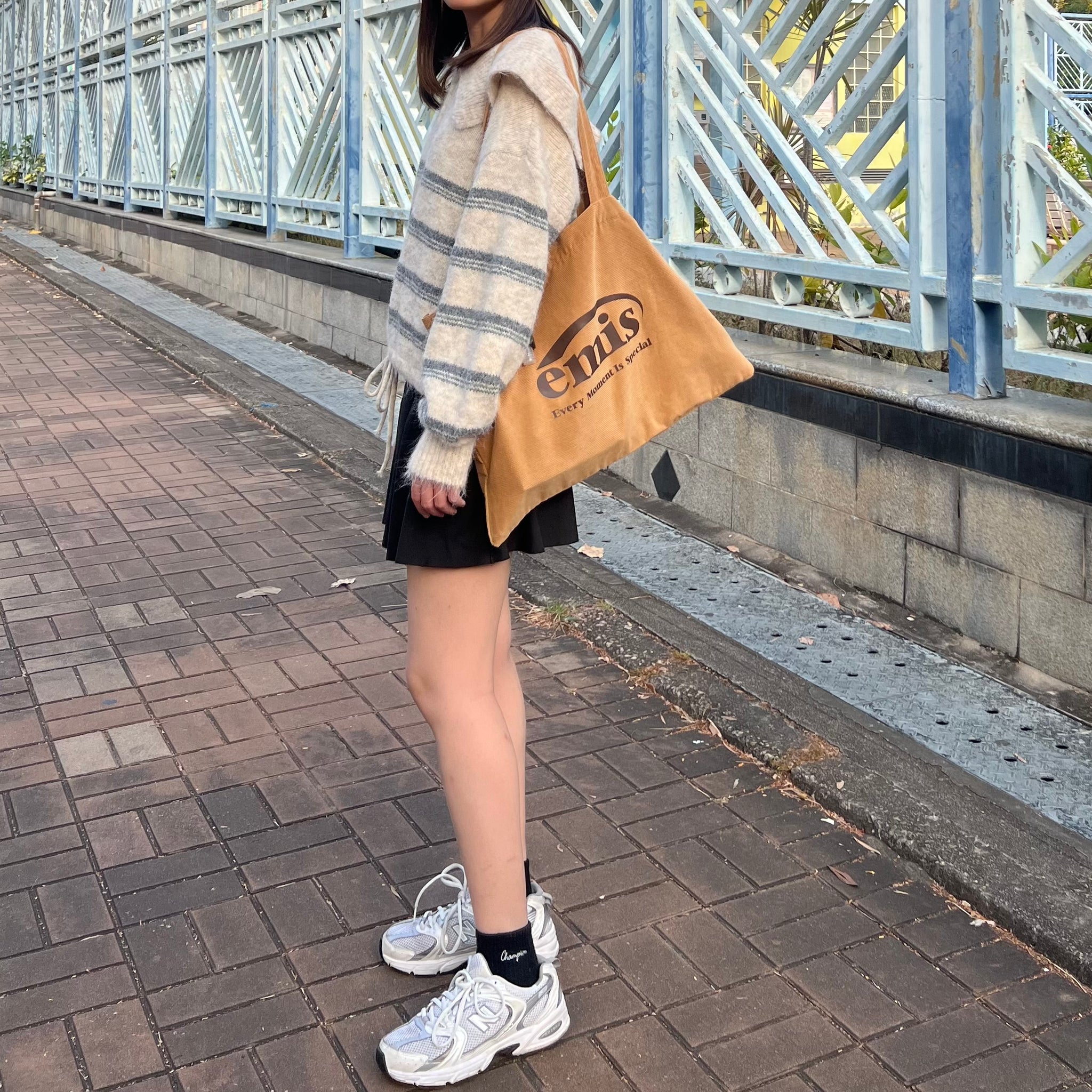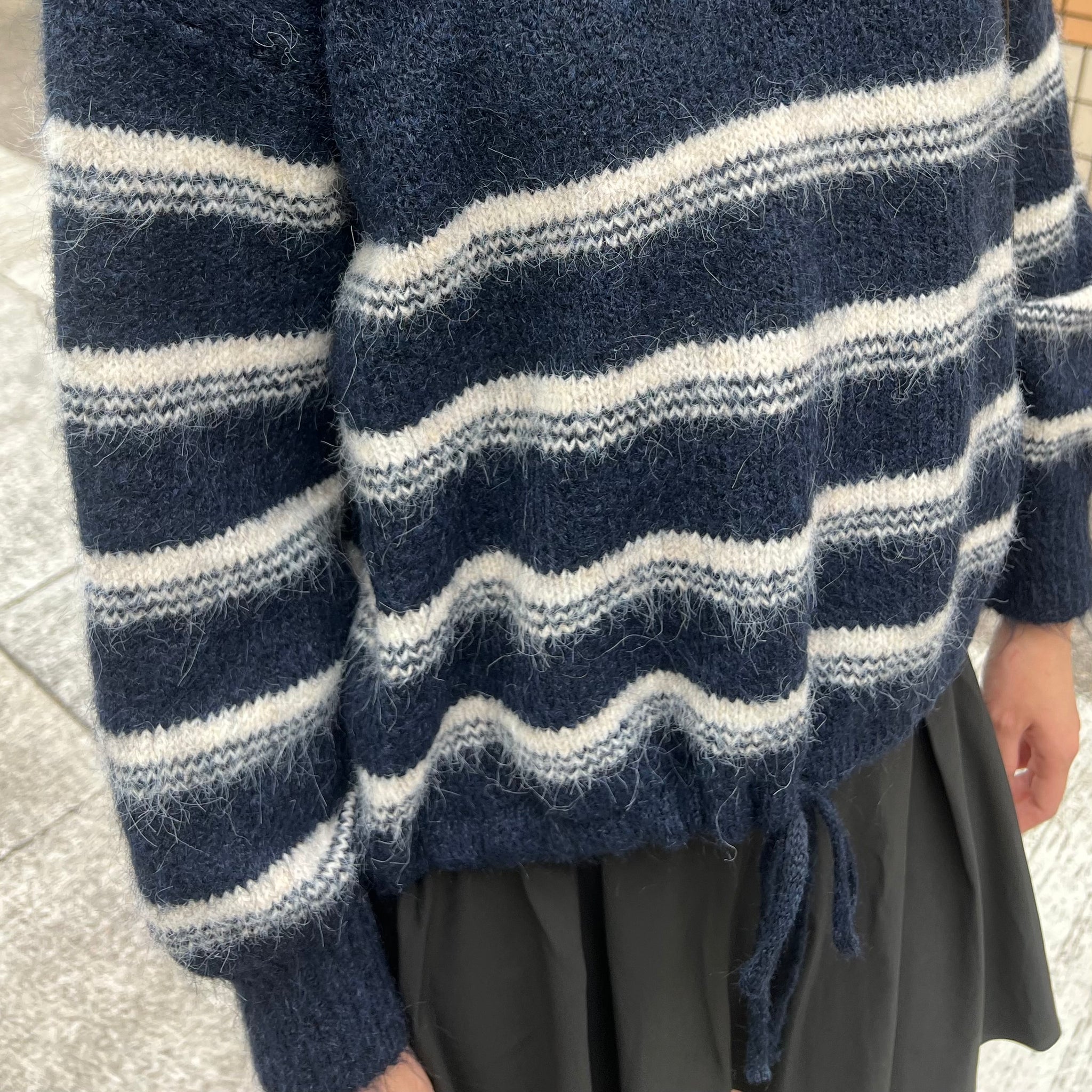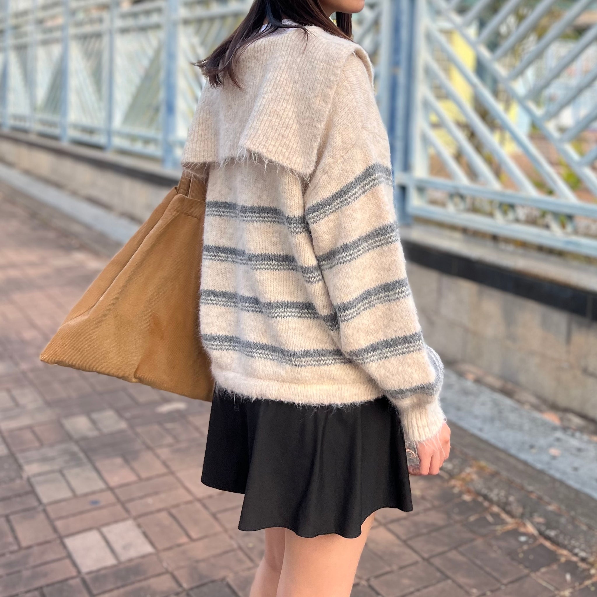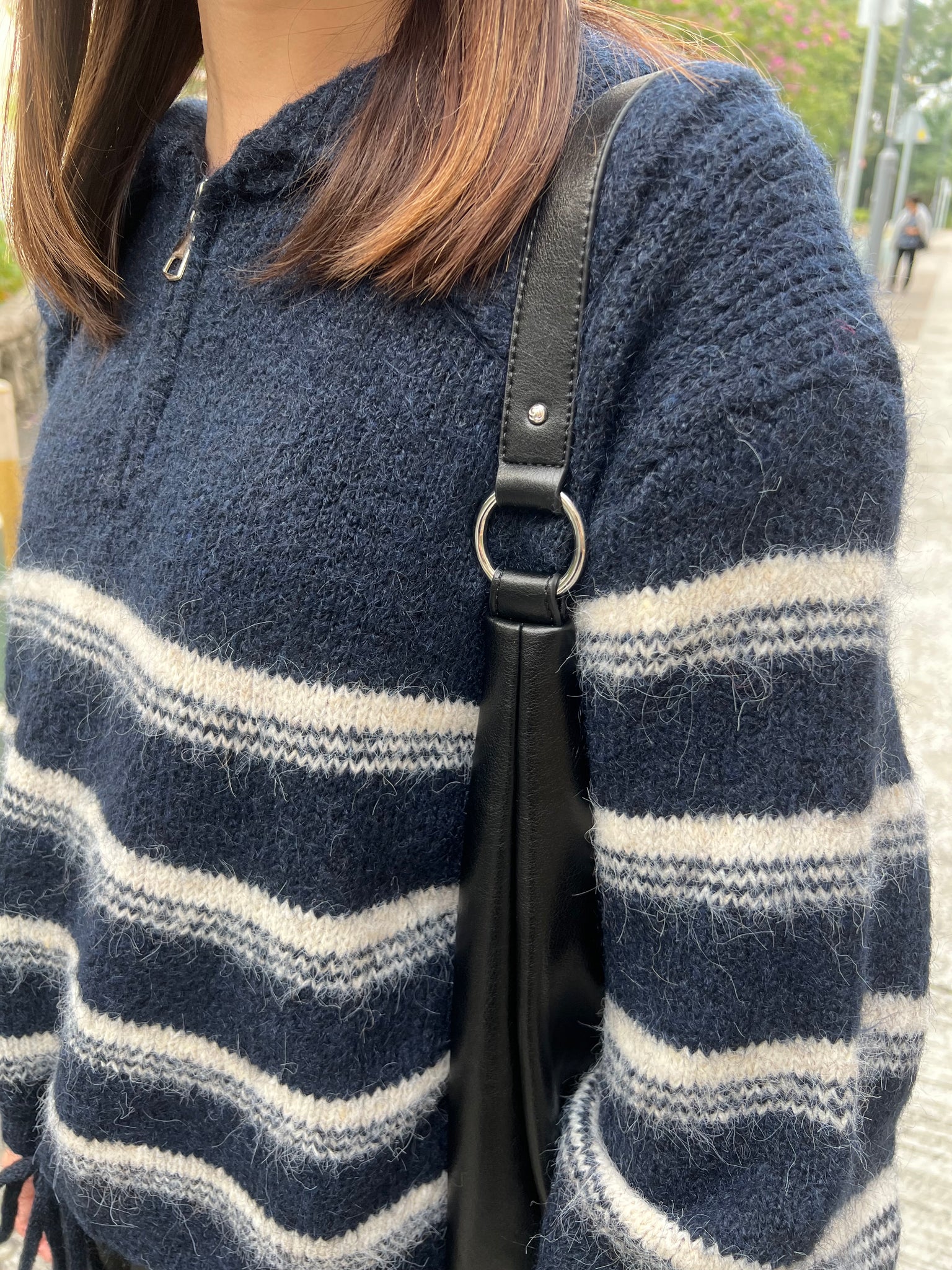 間條半拉鍊索腰上衣