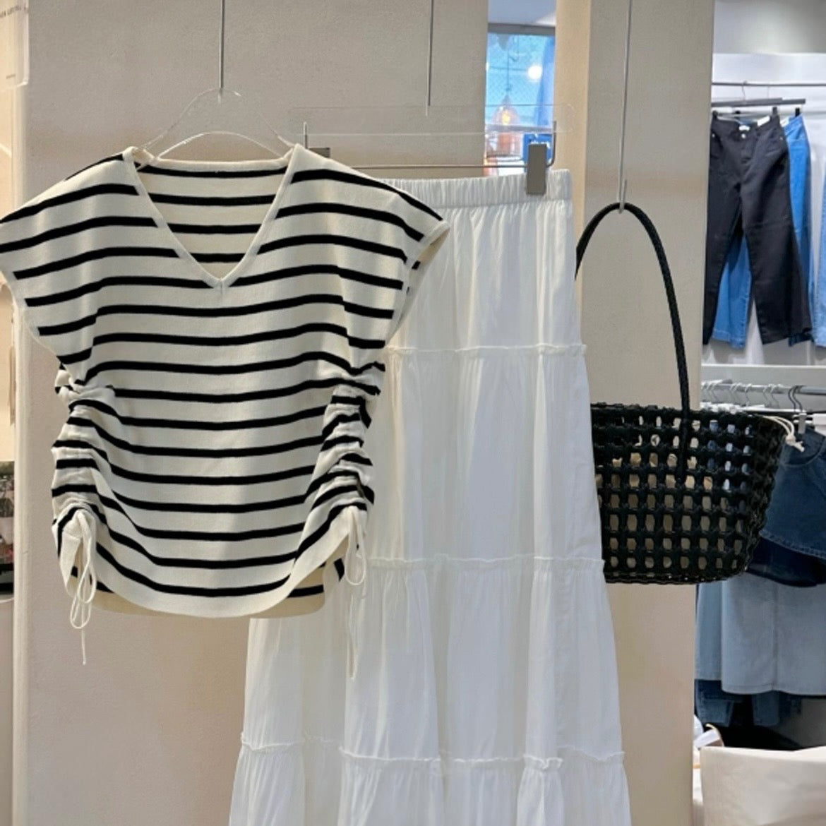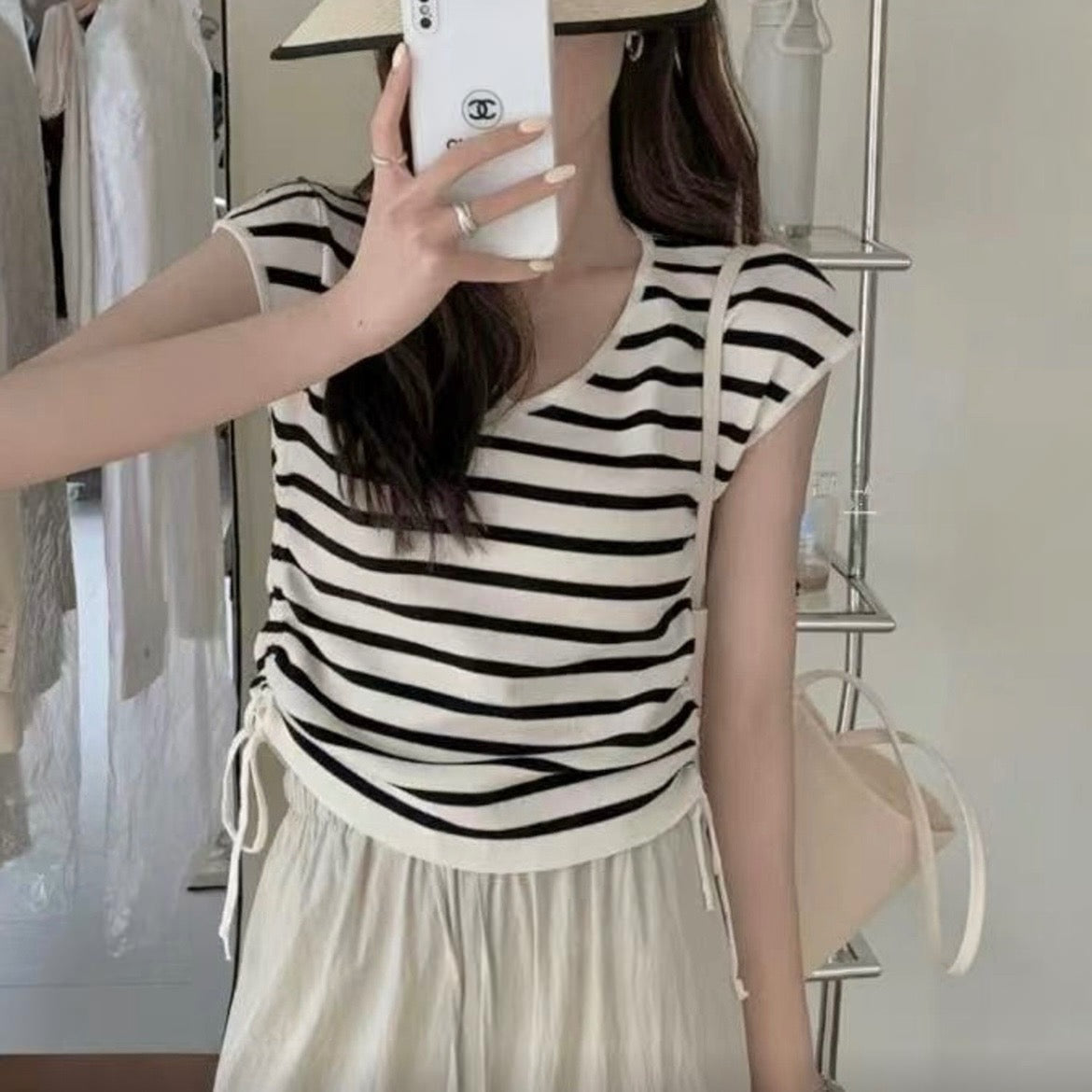 V領兩側抽繩上衣